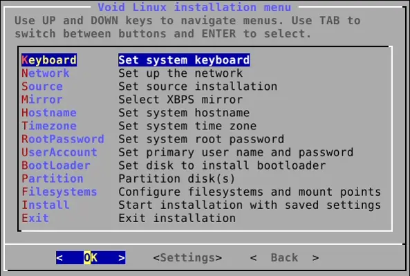Il y a deux façons principales d'installer Void Linux : en utilisant une image du live installer ou en utilisant un tarball qui contient le système de fichiers racine. Des deux méthodes, celle du live installer est la plus simple. Elle est similaire à la manière dont les autres distributions Linux sont installées. La méthode tarball, en revanche, est plus complexe car elle requiert que l'utilisateur ait déjà de bonnes connaissances de Linux. Elle exige également que l'utilisateur ait déjà accès à une distribution Linux pour pouvoir entrer dans le système en utilisant chroot.