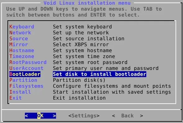 Les systèmes Linux nécessitent un boot loader pour pouvoir démarrer le système. grub est le boot loader généralement utilisé dans presque toutes les distributions. Il est également utilisé pour démarrer la version live de Void Linux.
