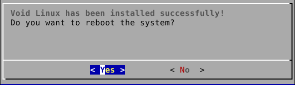 Tu peux maintenant redémarrer le système, retirer la clé USB, et commencer à utiliser le système Void Linux fraîchement installé. Tu es désormais prêt à plonger dans le Void !